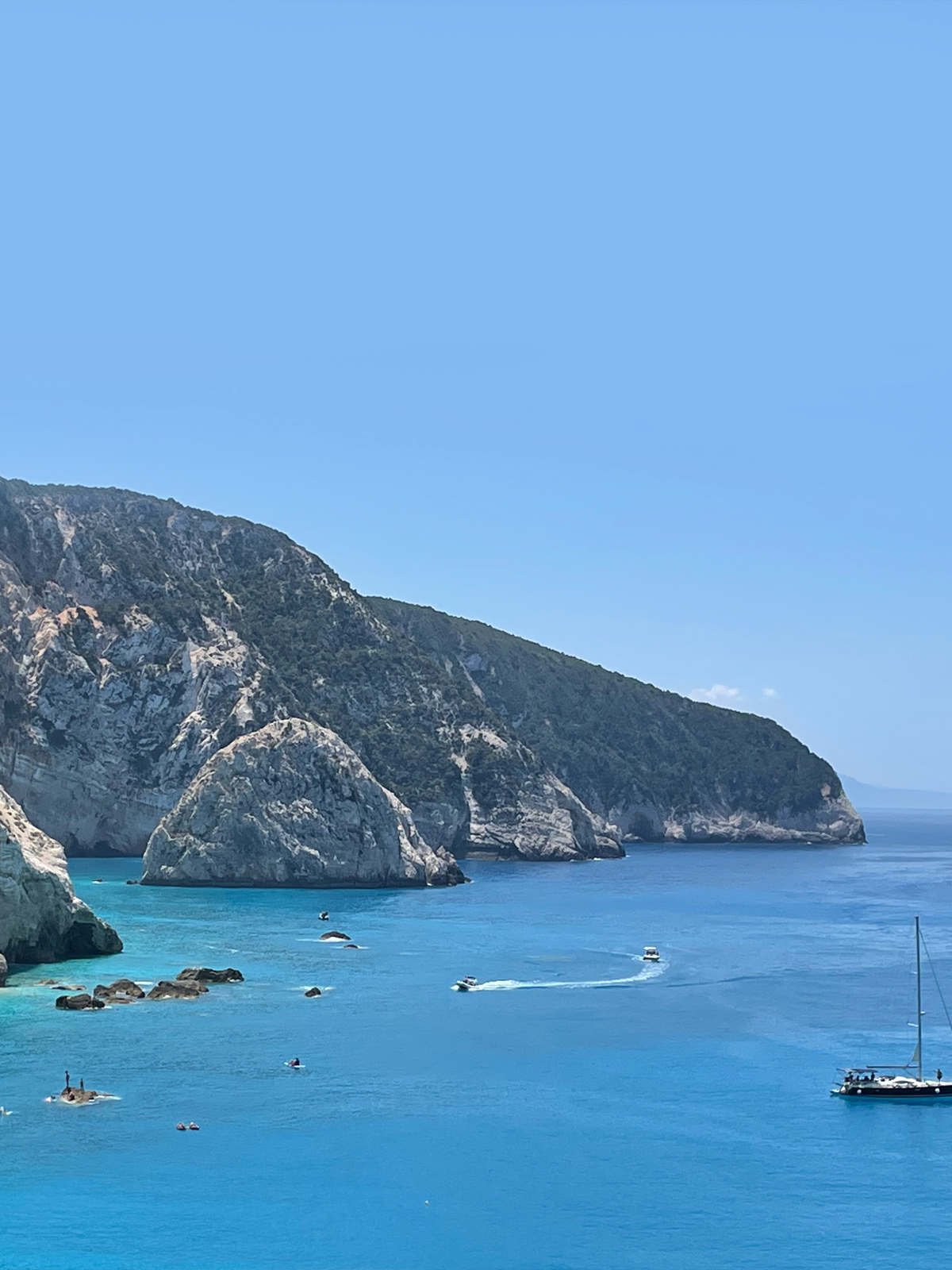Porto Katsiki: jedna z najbardziej znanych plaż Grecji – białe skały, turkusowa woda, zejście po schodach z klifu. Najlepiej widać ją z góry, warto zaliczyć nawet krótką wizytę.