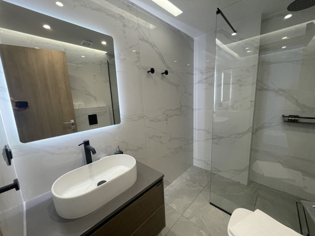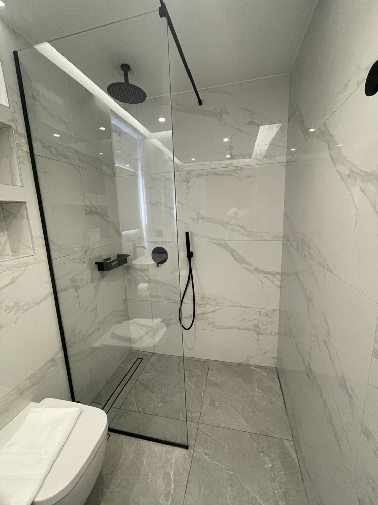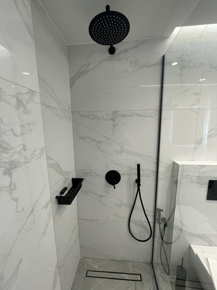 Jedno łóżko podwójne, prywatna łazienka, wyjście na taras z widokiem na morze.
