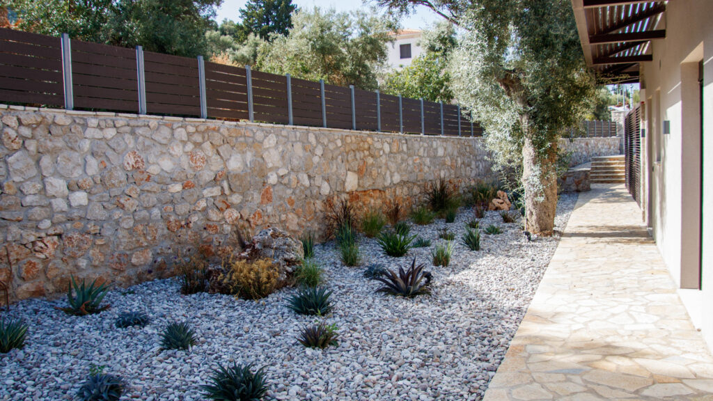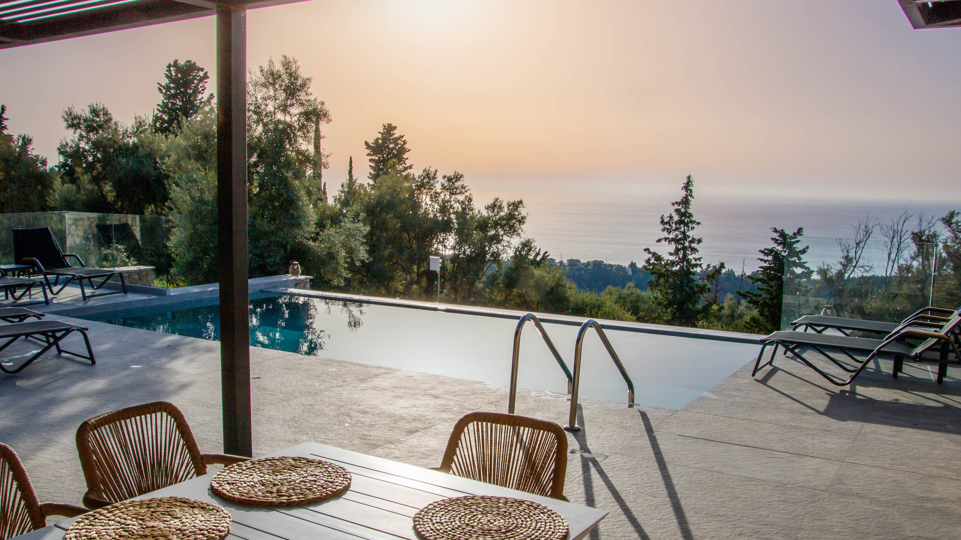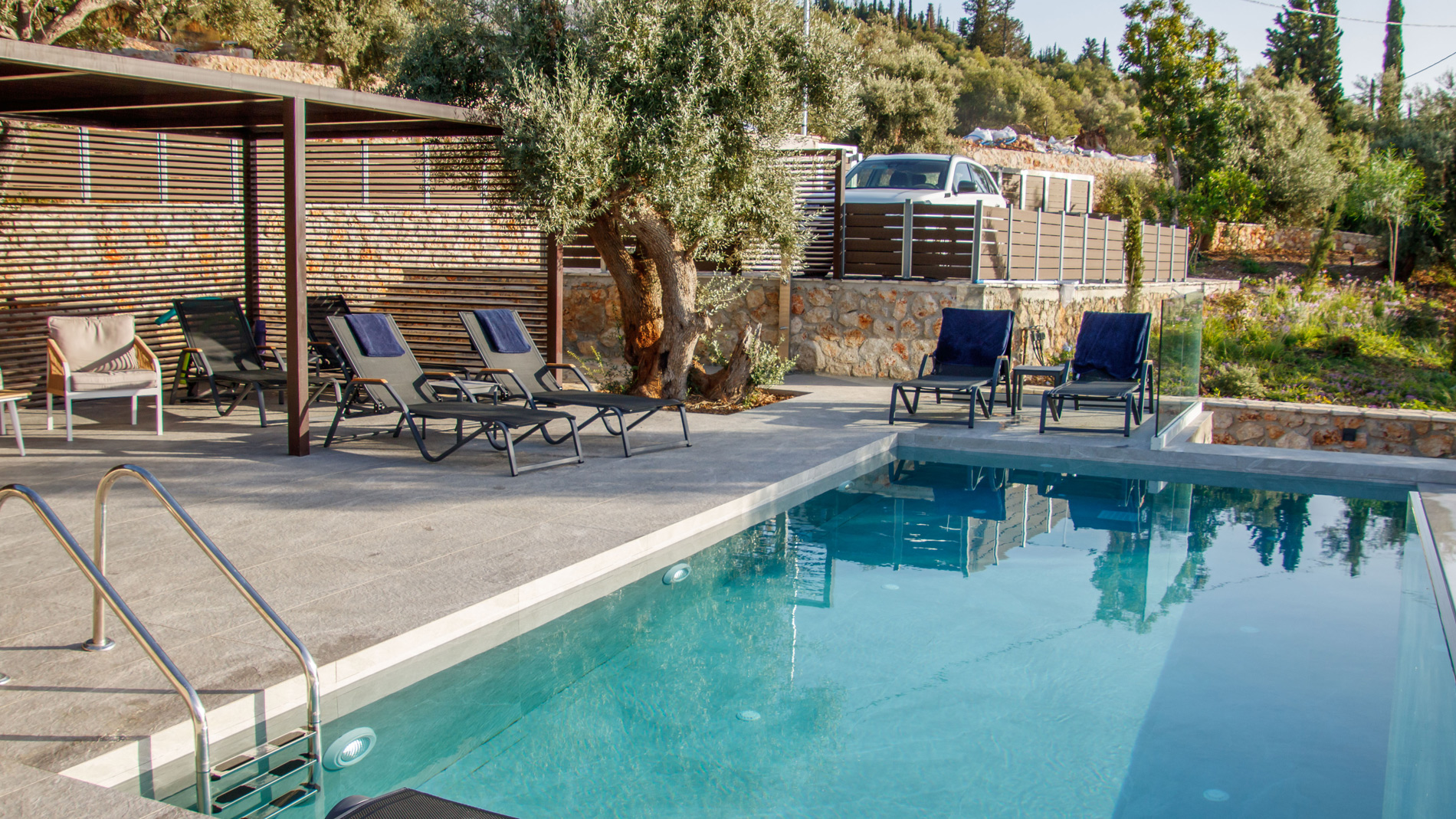 Na tarasie czas płynie inaczej. Duży stół jadalniany zaprasza do celebrowania posiłków z widokiem na bezkresne morze, a przytulna sofa z fotelami tworzy idealne miejsce na długie rozmowy pod gwiazdami. Wygodne leżaki na tarasie słonecznym, prywatny basen stapiający się z horyzontem oraz orzeźwiający prysznic na świeżym powietrzu dopełniają całości. Idealne miejsce, by zatrzymać chwilę, odetchnąć i poczuć magię Grecji.